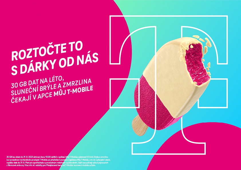 Roztočte to s dárky od nás, vyzývá T-Mobile v nové kampani od týmu Ticino (WPP). Představuje v ní hned tři prázdninové bonusy pro své zákazníky – 30 GB dat navíc a k tomu dárek v podobě slunečních brýlí a zmrzliny. Základ kampaně tvoří uvolněný TV spot z prostředí koupaliště, kde se na parketu u zmrzlinového stánku představuje za zvuku hitu Pump Up the Jam duo hlavních hrdinů, sympatická zmrzlinářka a tanečník Zdeněk Chlopčík. Kampaň bude nasazena od začátku července a k vidění bude v TV, tisku, online prostoru, na nosičích OOH a v místě prodeje až do konce srpna, kdy končí časově omezená nabídka.